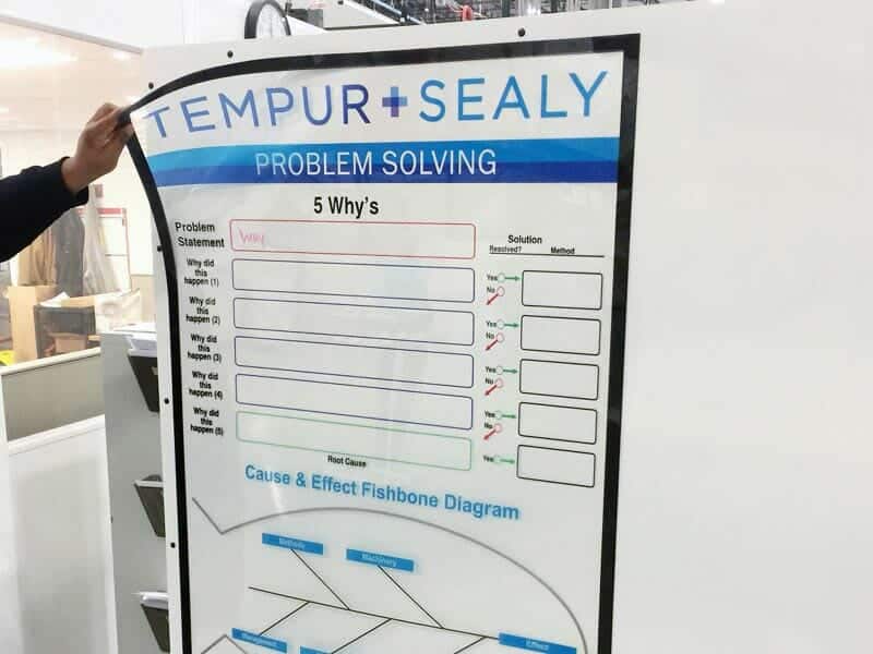 Visual Workplace, Inc. offers a complete line of dry erase boards and overlays to support 5S and Lean activities. Scoreboards provide a simple way to collect data and share information quickly with team members and show performance against the standard. Scoreboards are frequently employed at the point of use for application accountability, production schedules, Kaizen projects, 5 Why’s, A3 projects and more.